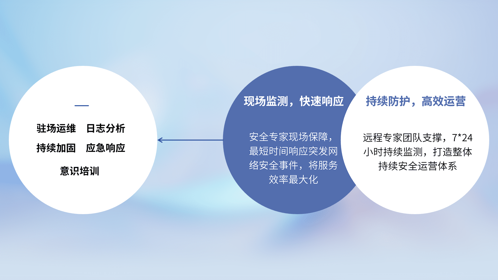 7X24小时持续监测安全事件,保持安全策略有效性,降低资产脆弱性风险,,,,精准拦截黑客攻击,,减少被黑客利用的机会,,,,第一时间遏制,,降低损失。。